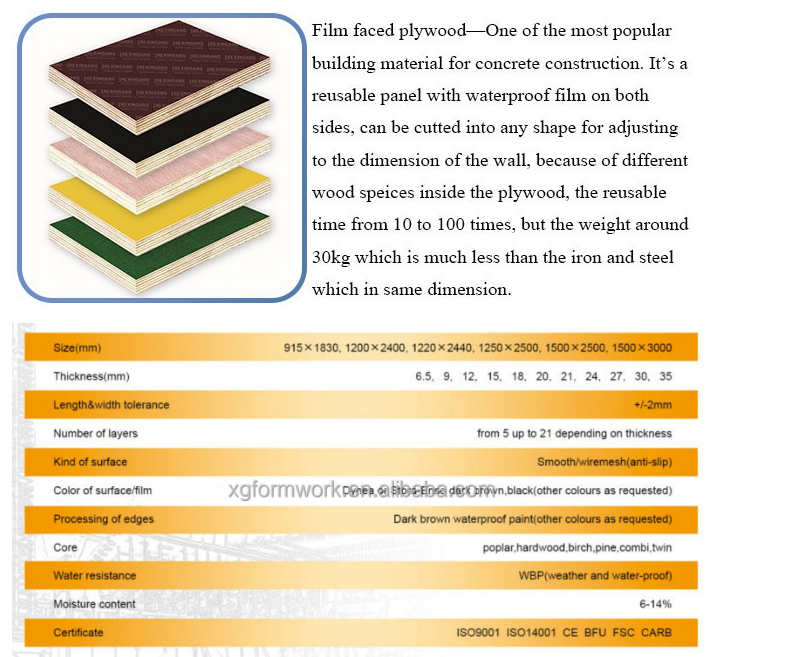 สถานที่กำเนิด: มณฑลซานตง ประเทศจีน ชื่อแบรนด์: XGชื่อ:ไม้อัดเคลือบฟิล์ม การใช้งาน:กลางแจ้ง