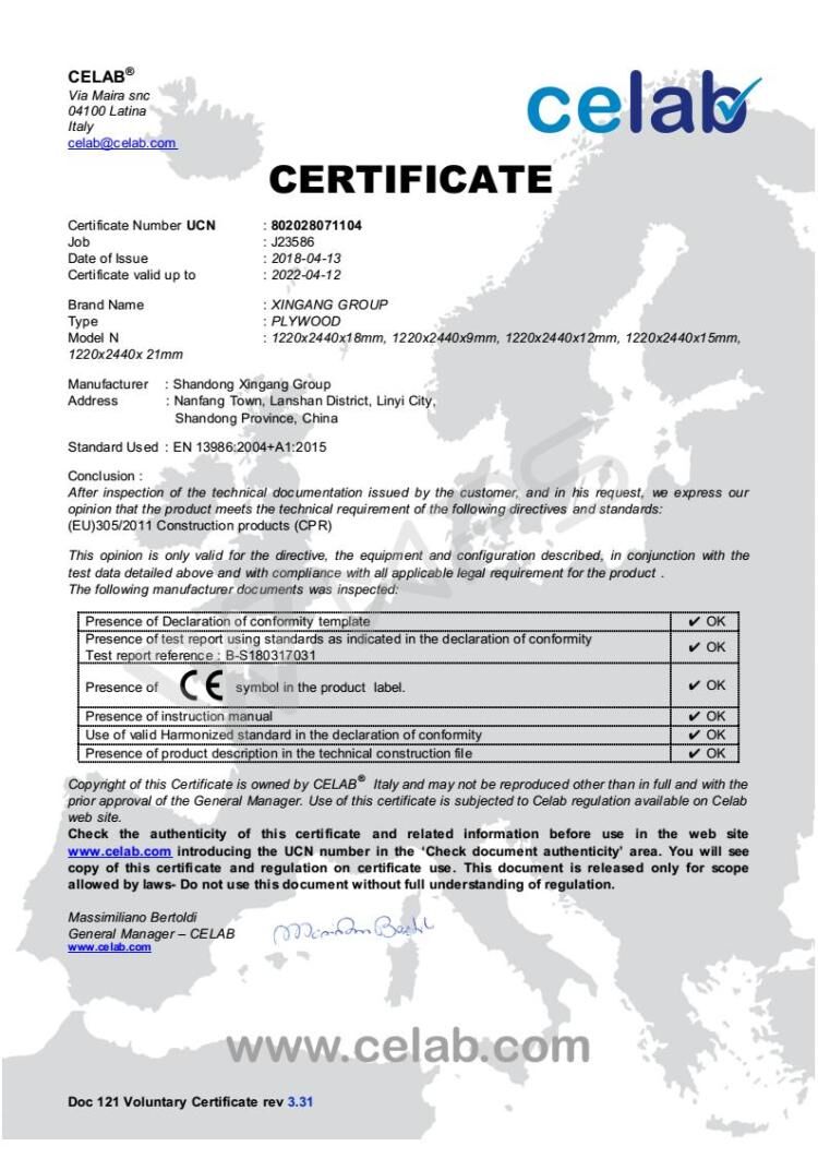 ใบรับรอง:SGS / ISO/FSC/F4/CARB